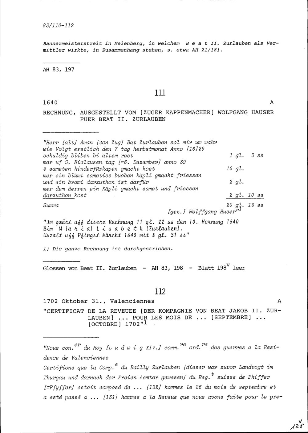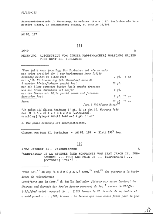 Bestätigung für Beat Jakob II. Zurlauben, Kommandant