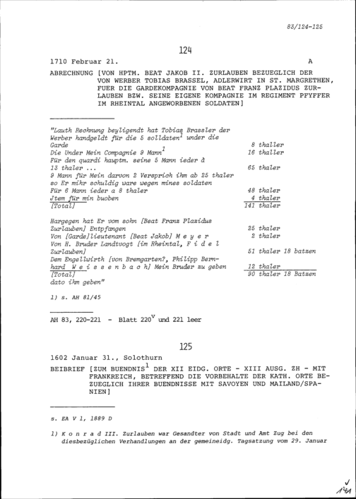 Beibrief zum Bündnis der Zwölf Orte mit Frankreich betreffend Vorbehalte der Katholischen...