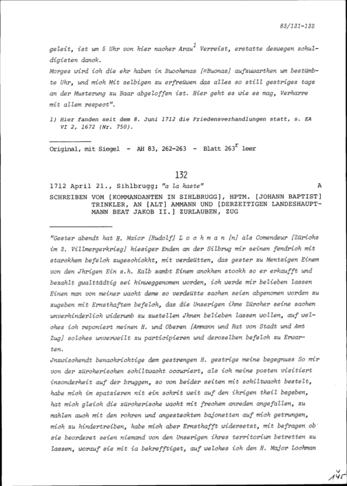 Schreiben von Jost Anton Schmid, Urner Kriegsrat, an Beat Jakob II. Zurlauben, Altammann und Landeshauptmann, Zug