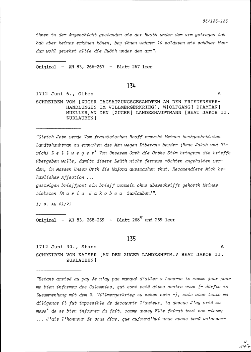 Schreiben von NN Kaiser an Beat Jakob II. Zurlauben, Zuger Landeshauptmann