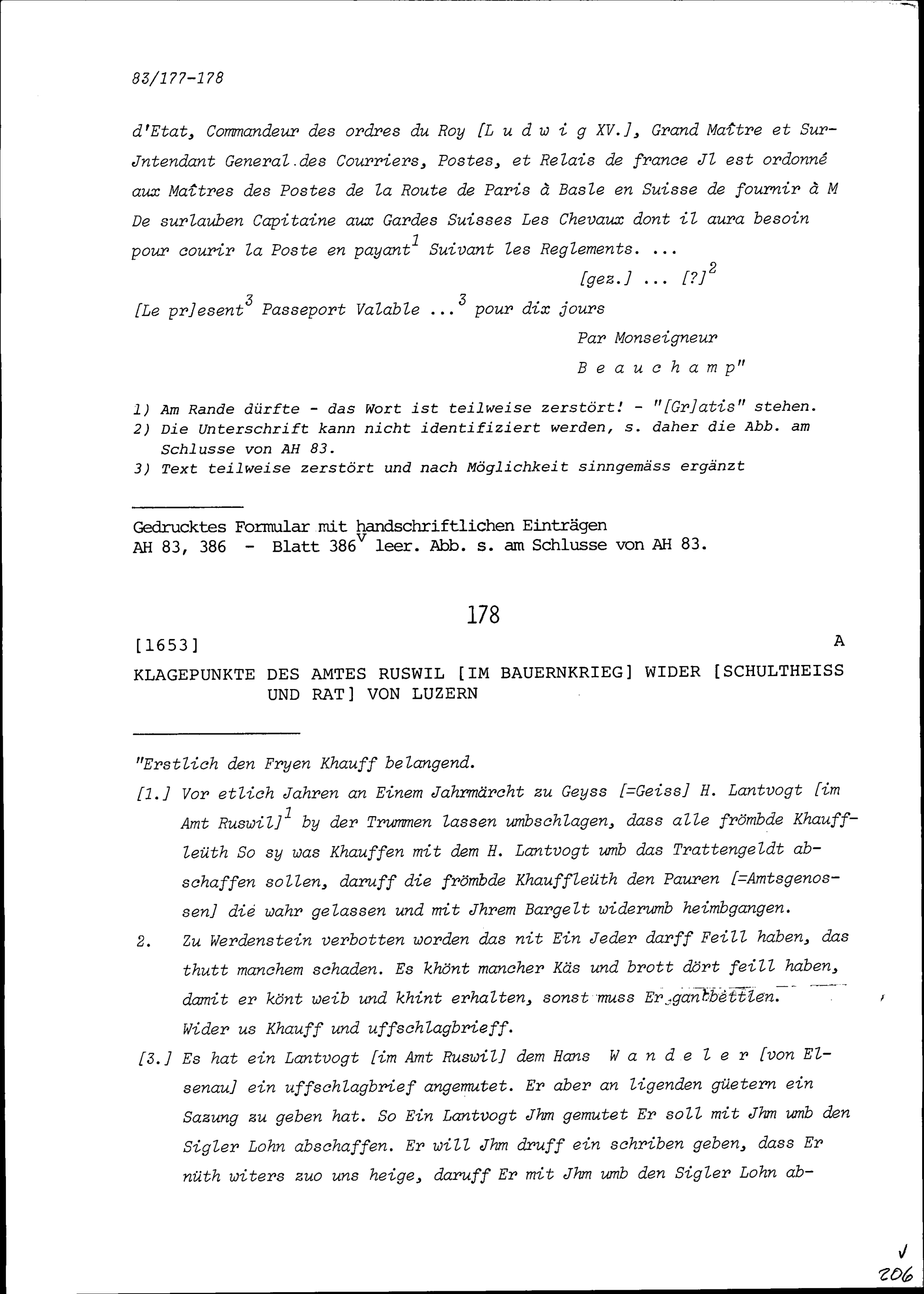 Druck: Passeport, ausgestellt von Jean-Jacques Amelot, zugunsten von Beat Fidel Zurlauben, Gardehauptmann