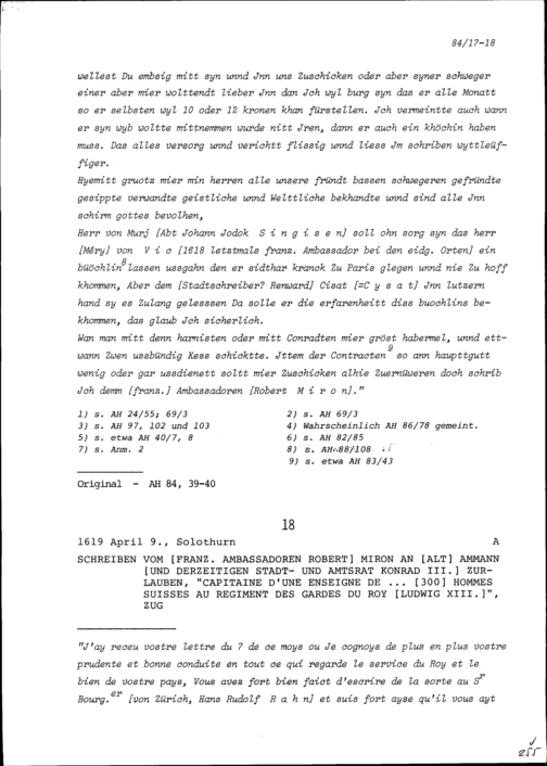 Schreiben von Konrad III. Zurlauben, Gardehauptmann, an Beat II. Zurlauben
