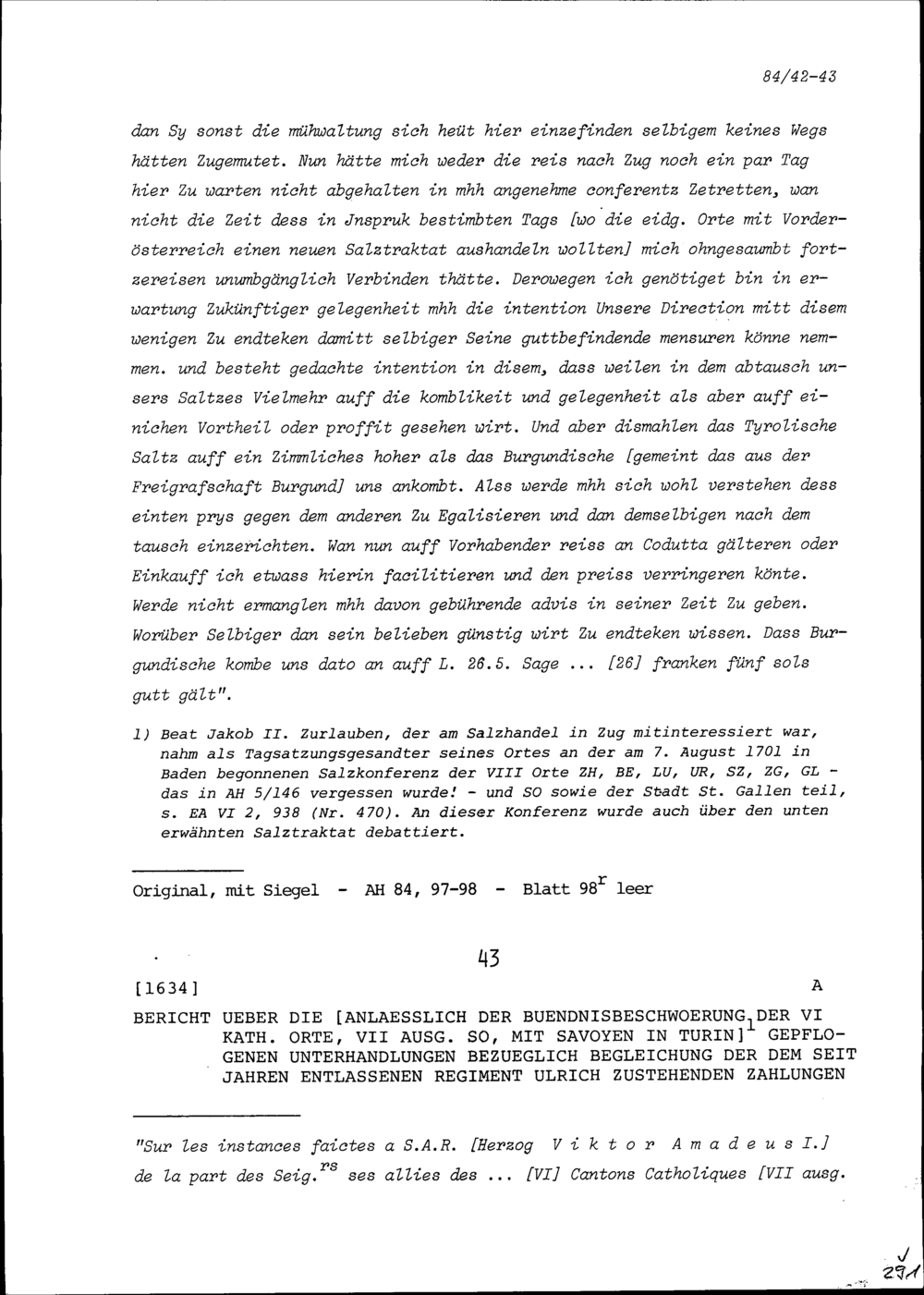 Schreiben von Ulrich Thormann, Berner Salzdirektor, an Beat Jakob II. Zurlauben, Altlandvogt der Freien Ämter, Zug