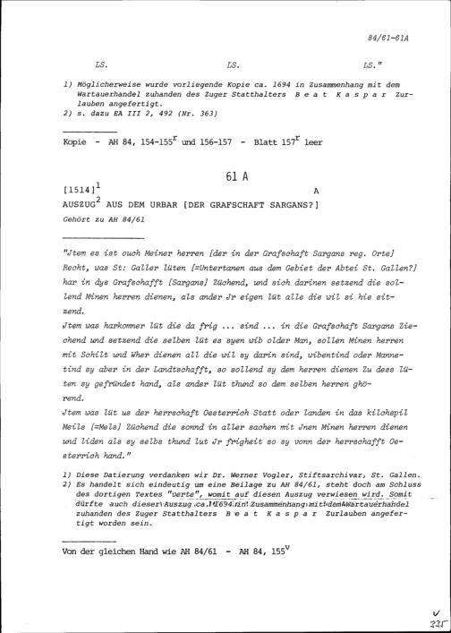 Urkunde in Zusammenhang mit Streitigkeiten zwischen der Grafschaft Sargans einerseits und der Herrschaft Wartau und der Grafschaft Werdenberg anderseits