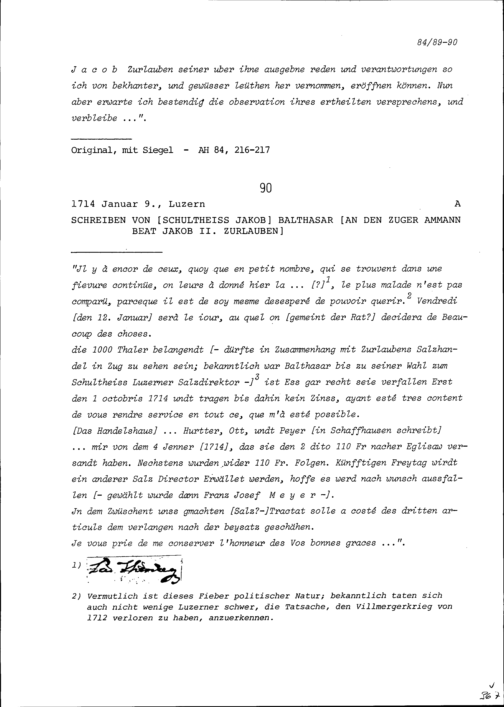 Schreiben von Maria Elisabeth Reding von Biberegg an Maria Margaretha Pfyffer, verheiratete Zurlauben, Zug
