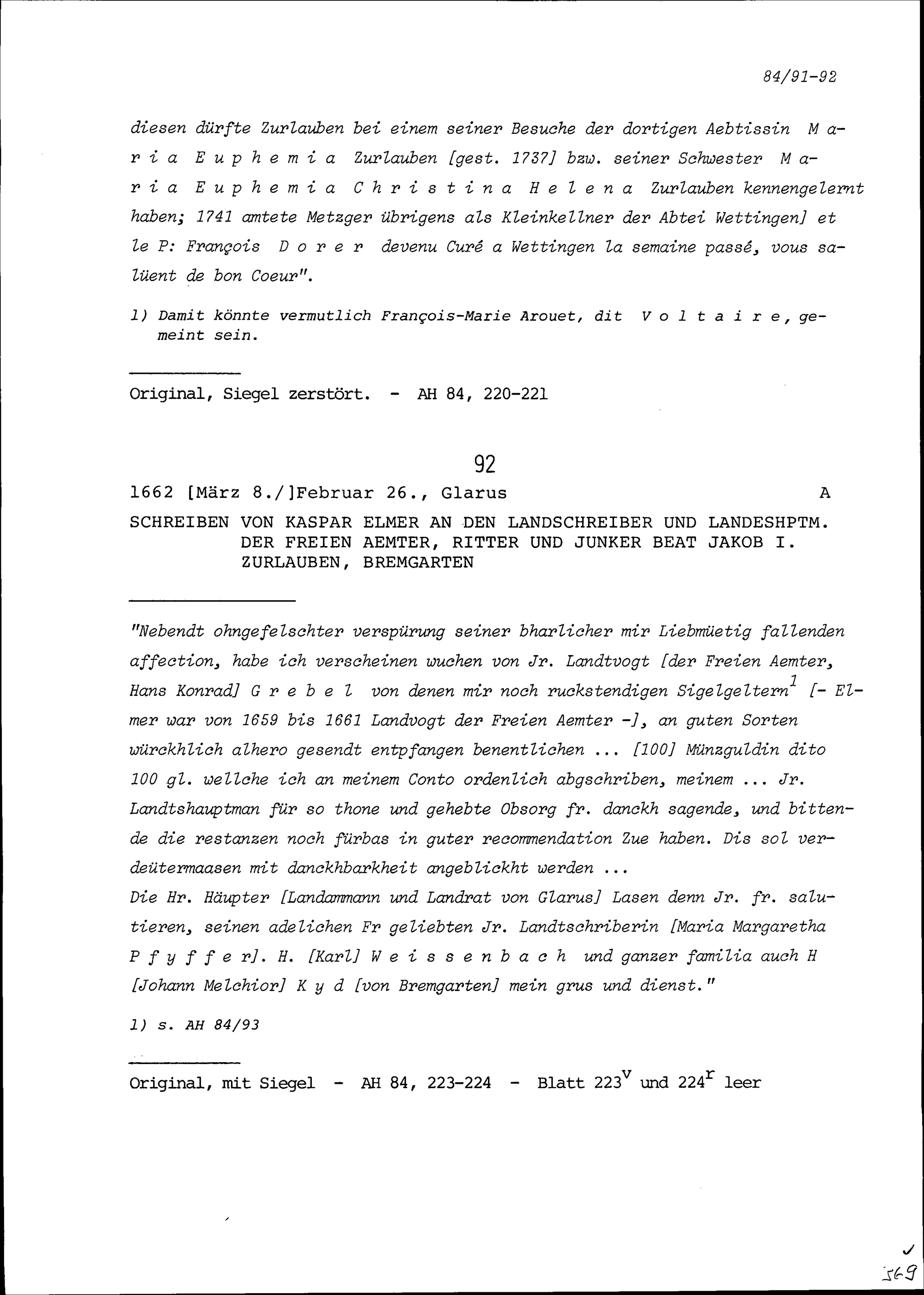 Schreiben von Gerold Brandenberg, Konventuale, an Beat Fidel Zurlauben, Zug