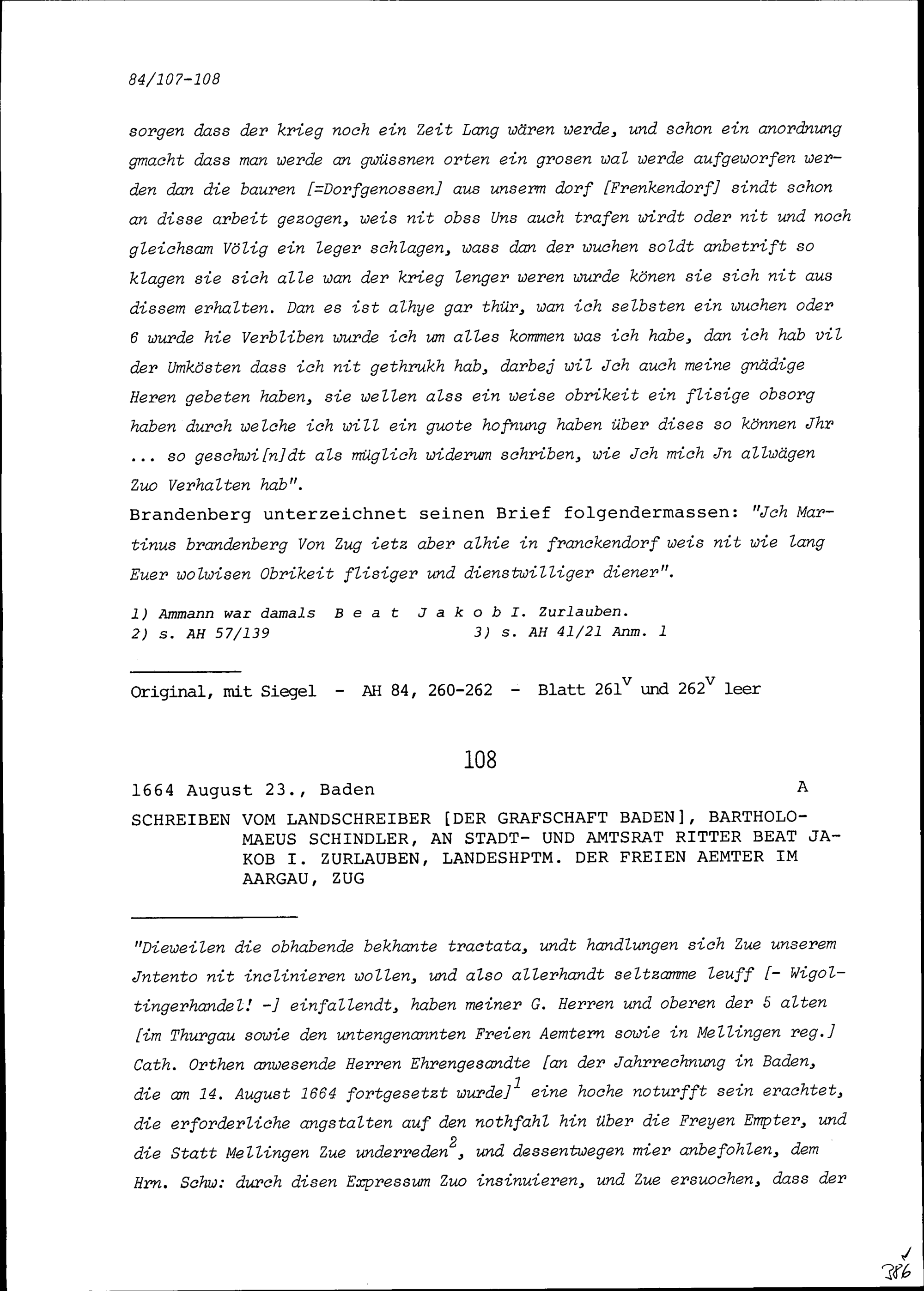 Schreiben von Martin Brandenberg, Hauptmann, an Ammann, Statthalter und Rat von Stadt und Amt Zug