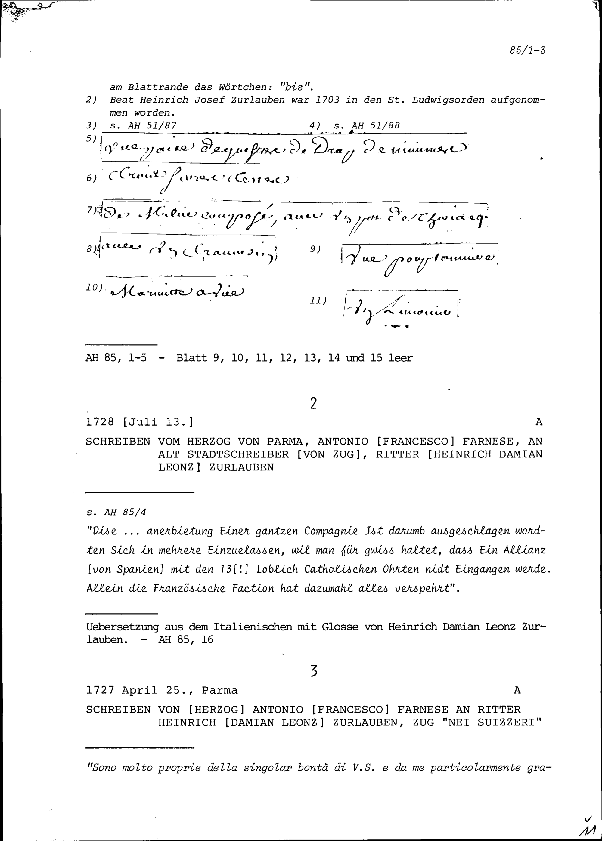 Inventar der Hinterlassenschaft von Beat Heinrich Josef Zurlauben, Gardehauptmann, aufgezeichnet von Karl Jakob von Besenval, Major, von Beat Franz Plazidus Zurlauben und von Felix Oswald Kolin, Leutnant, auf Anordnung von François-Nicolas-Albert Castella, Oberst