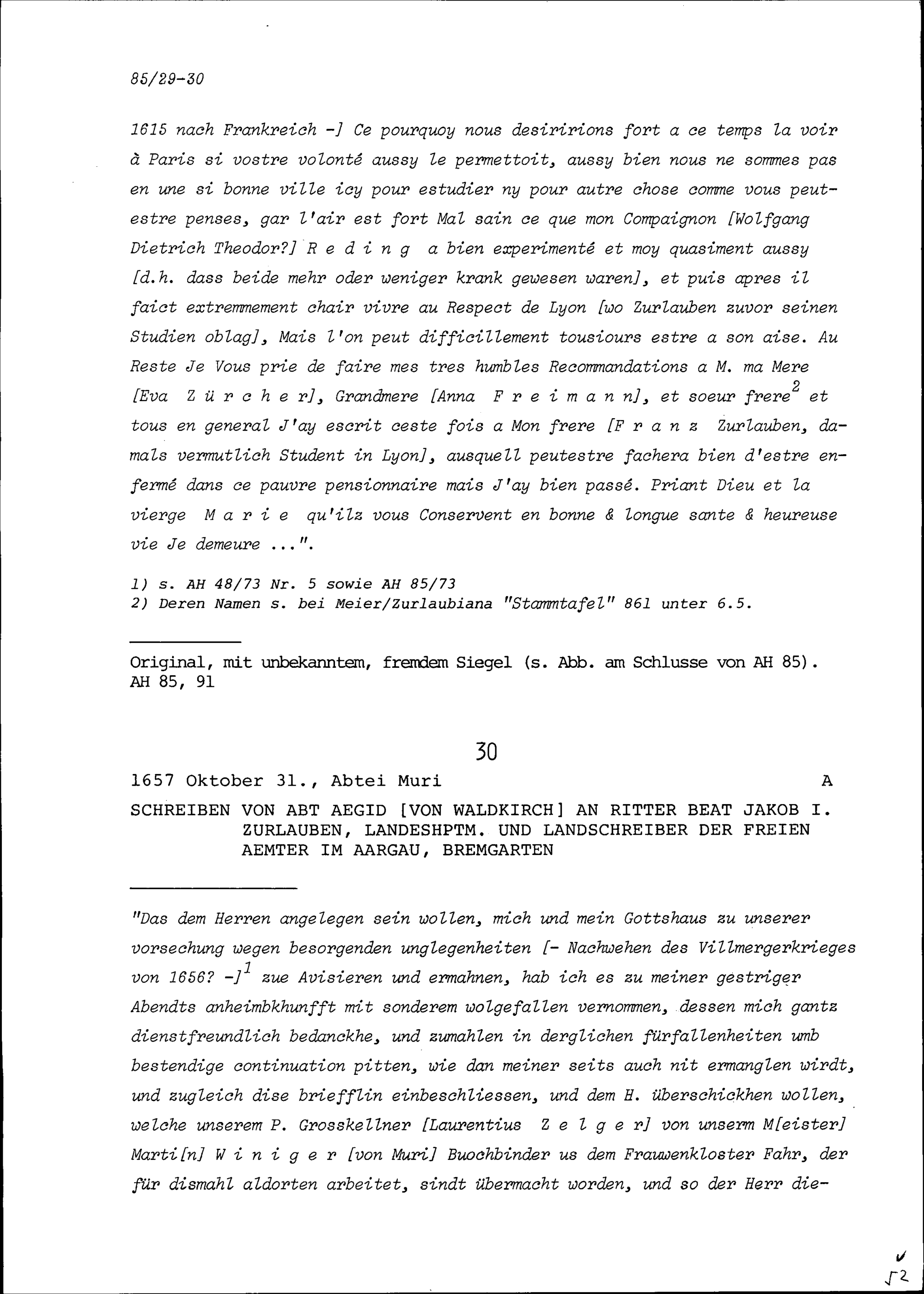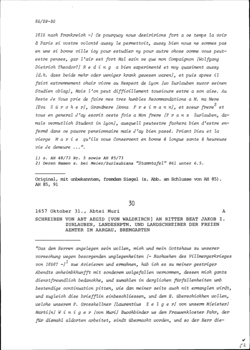Schreiben von Beat II. Zurlauben, Student, an Konrad III. Zurlauben, Zug