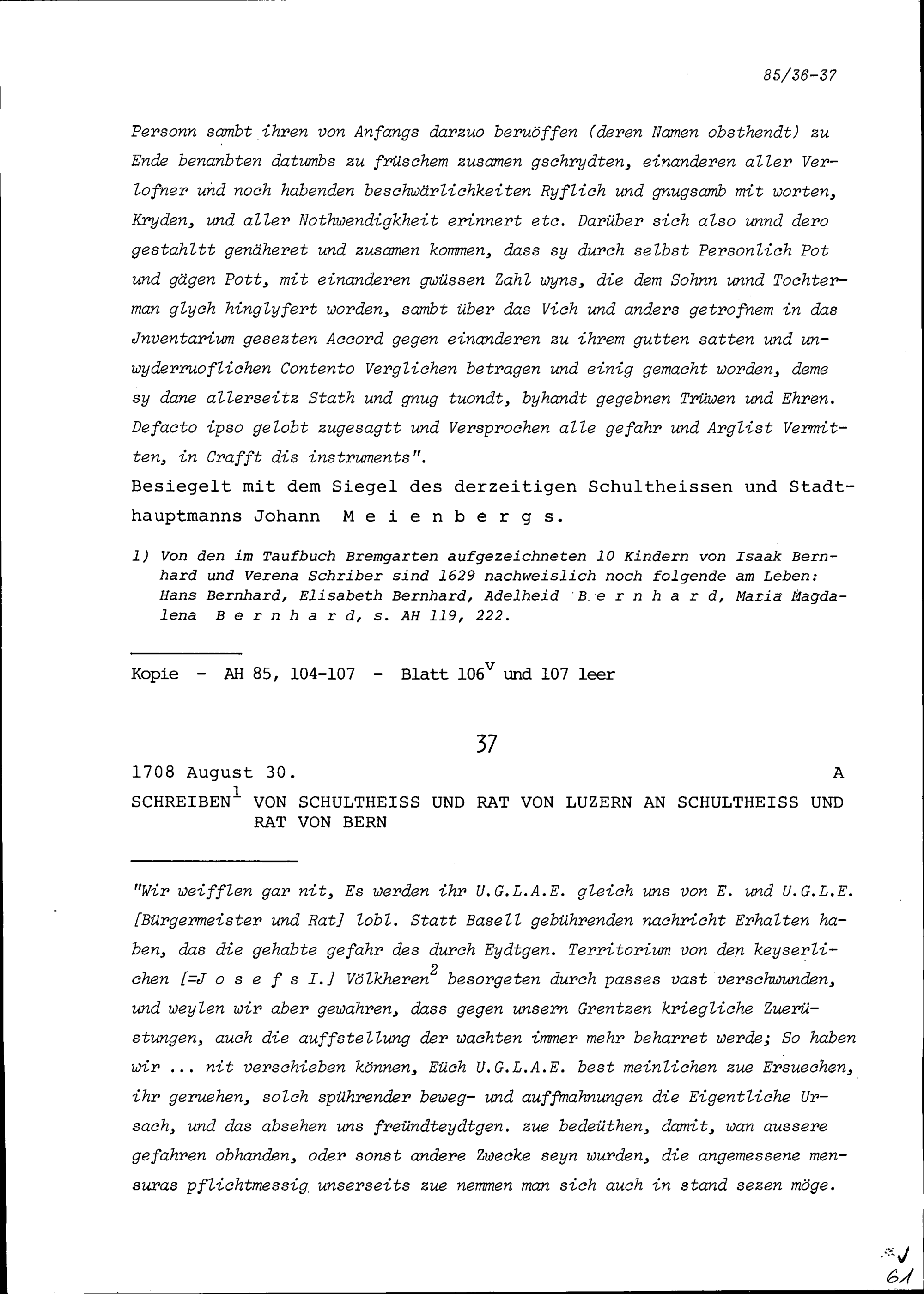 Ehevertrag zwischen Melchior Honegger, Wirt zum Engel in Bremgarten, und Verena Schriber
