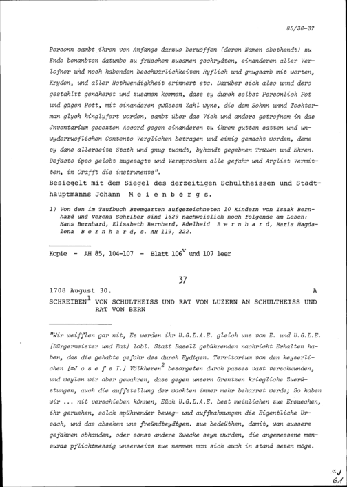 Ehevertrag zwischen Melchior Honegger, Wirt zum Engel in Bremgarten, und Verena ...