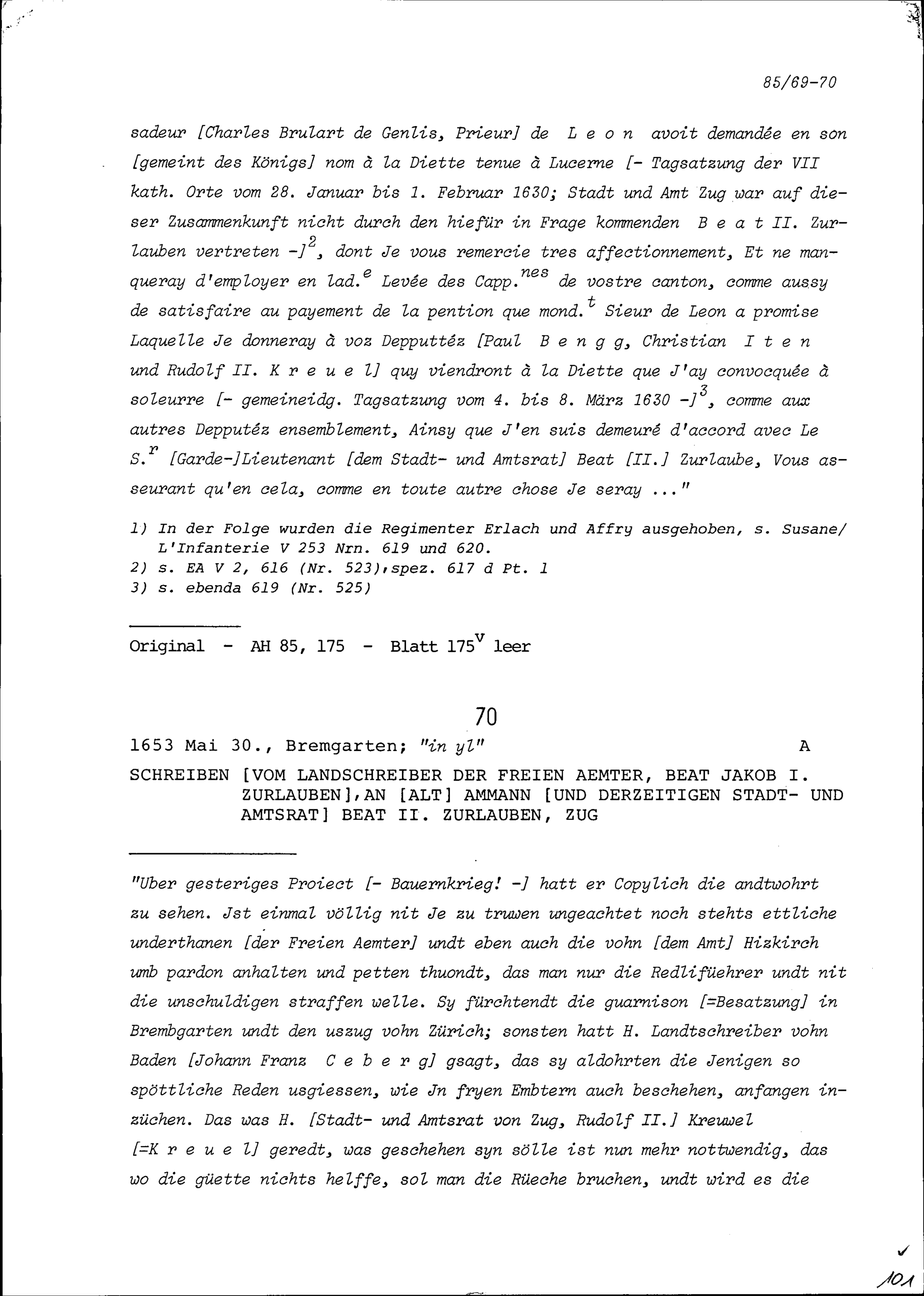 Schreiben von François de Bassompierre, Ambassador von Frankreich, an Ammann und...