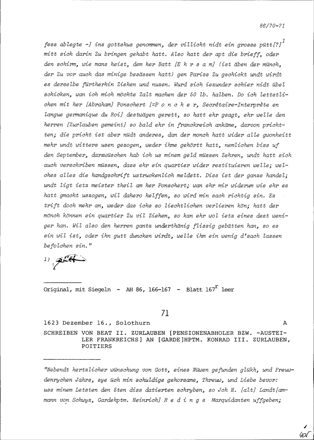 Schreiben von Paul Wickart, Medizinstudent studierender an der Sorbonne, an Konrad III. Zurlauben, Altammann und Hauptmann, Tours
