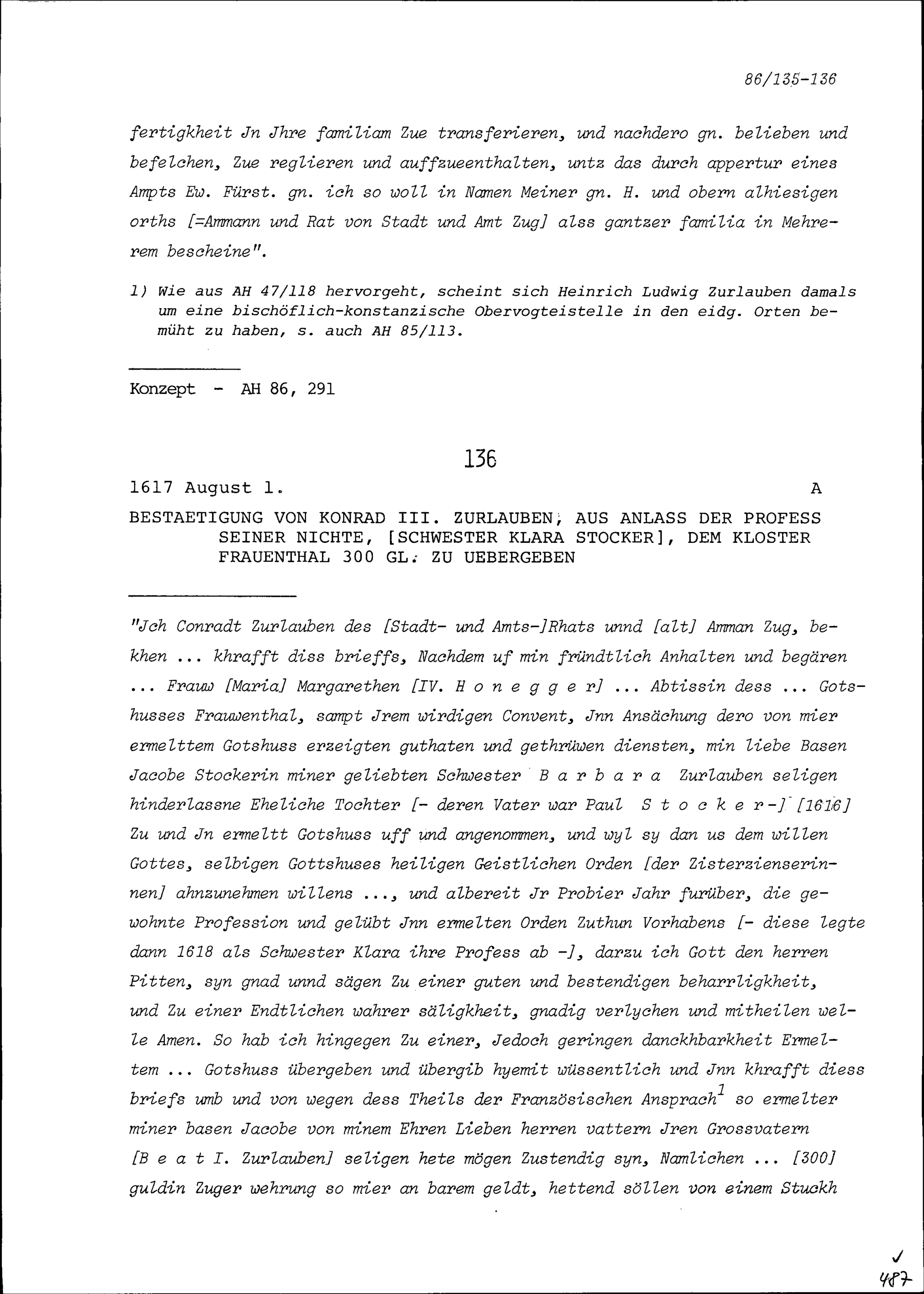 Schreiben von Heinrich Ludwig Zurlauben an Franz Johann Vogt von Prassberg-Summerau, Bischof von Konstanz