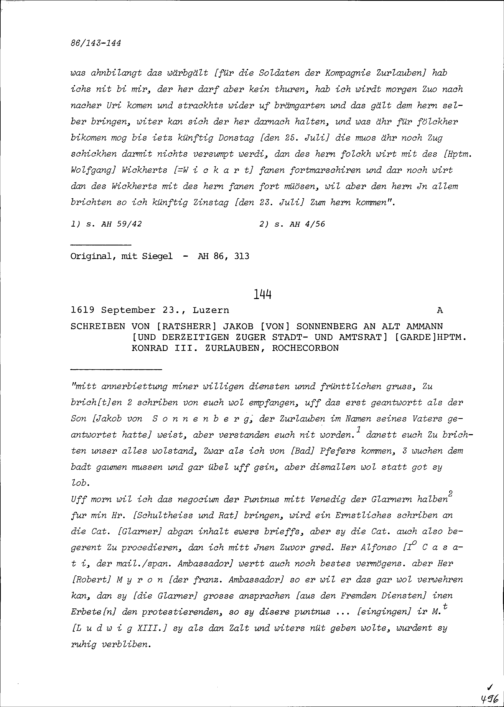 Schreiben von Christian Hermann an Beat Jakob I. Zurlauben, Landschreiber der Freien...