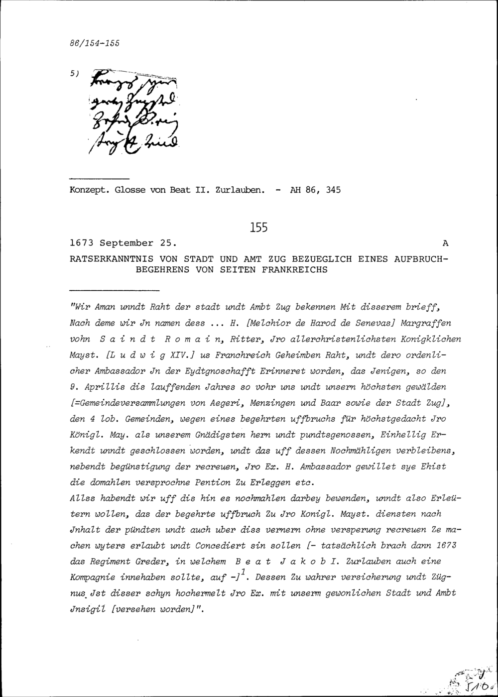 Gutachten von Beat II. Zurlauben, Stadt- und Amtrat Zug, über Rechtsstreitigkeiten...