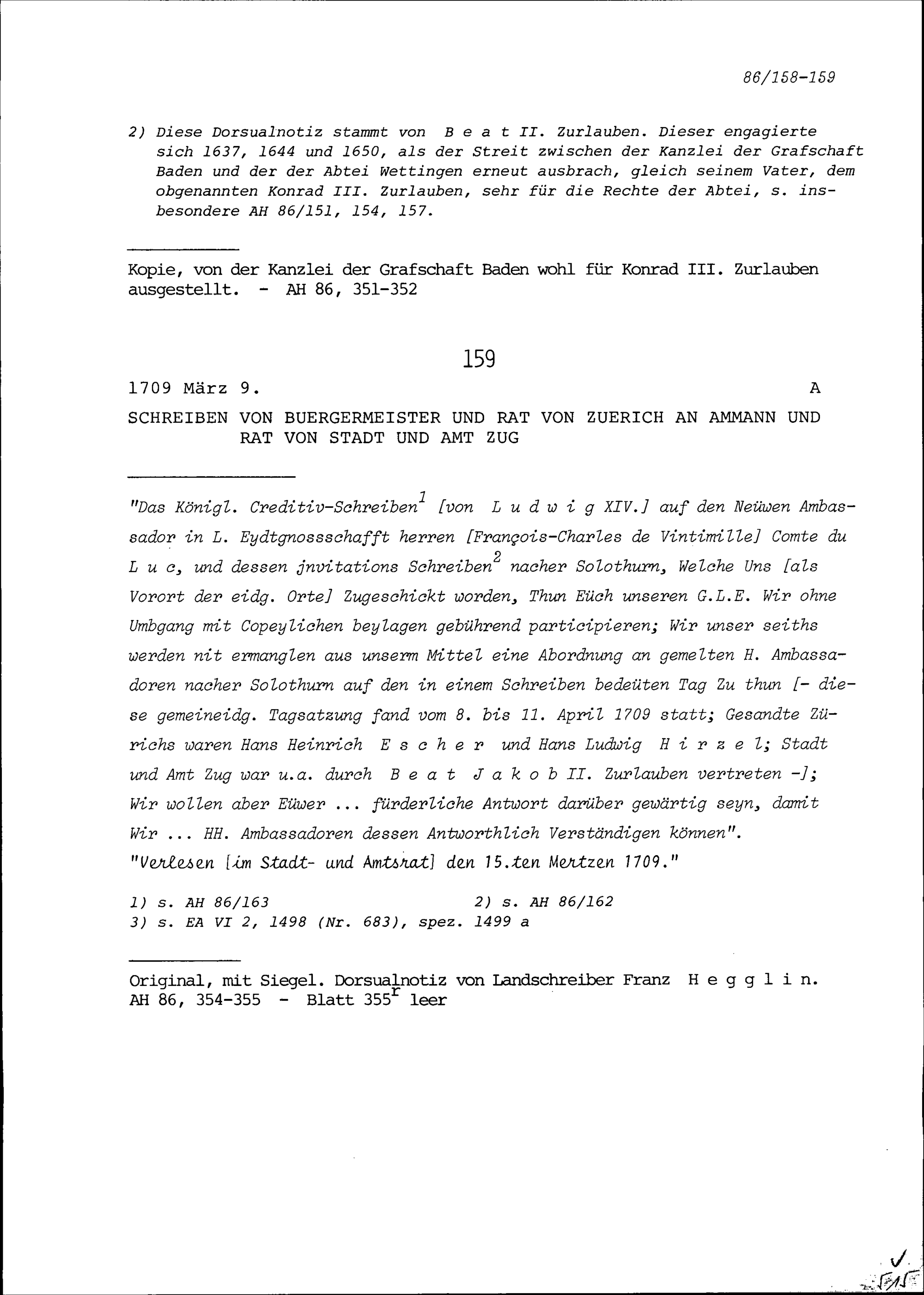 Schiedsspruch im Rechtsstreit zwischen der Abtei Wettingen einerseits und der Grafschaft...