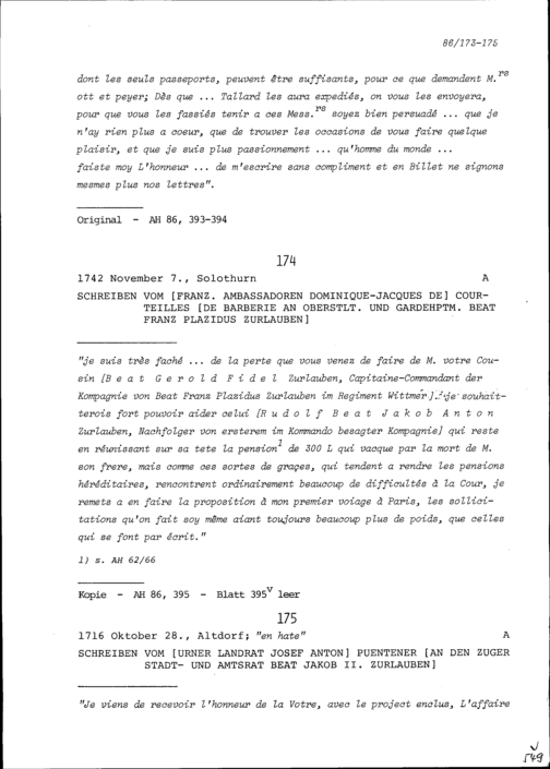 Schreiben von Josef Anton Püntener, Landrat Uri, an Beat Jakob II. Zurlauben, Stadt- und Amtrat Zug