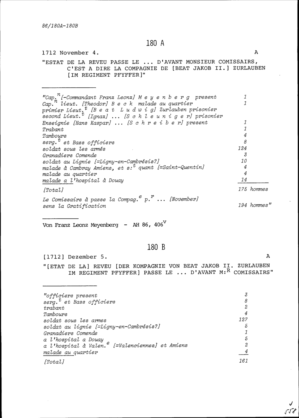 Mannschaftsbestand der Kompanie von Beat Jakob II. Zurlauben im Regiment Pfyffer"