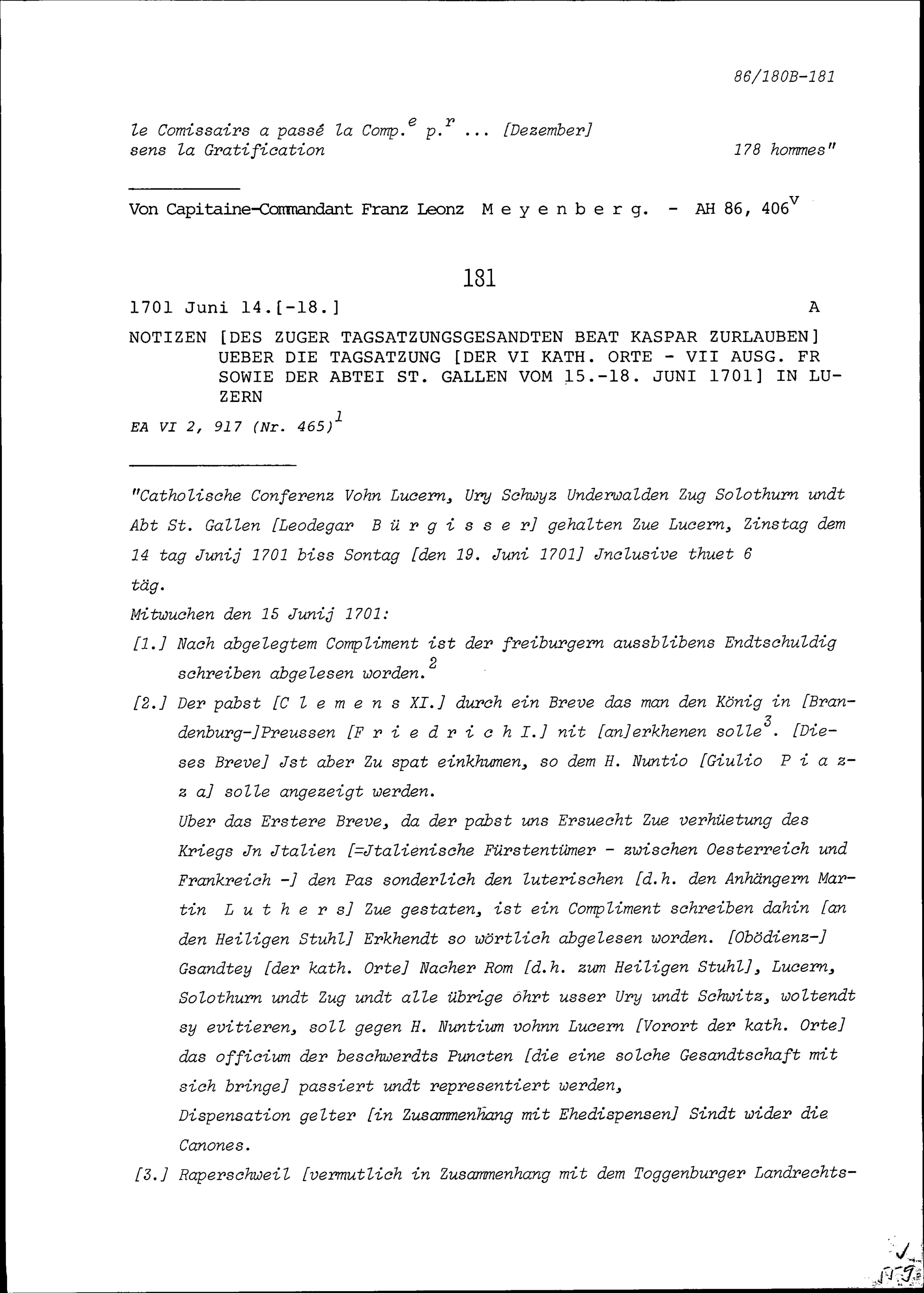 Mannschaftsbestand der Kompanie von Beat Jakob II. Zurlauben im Regiment Pfyffer"