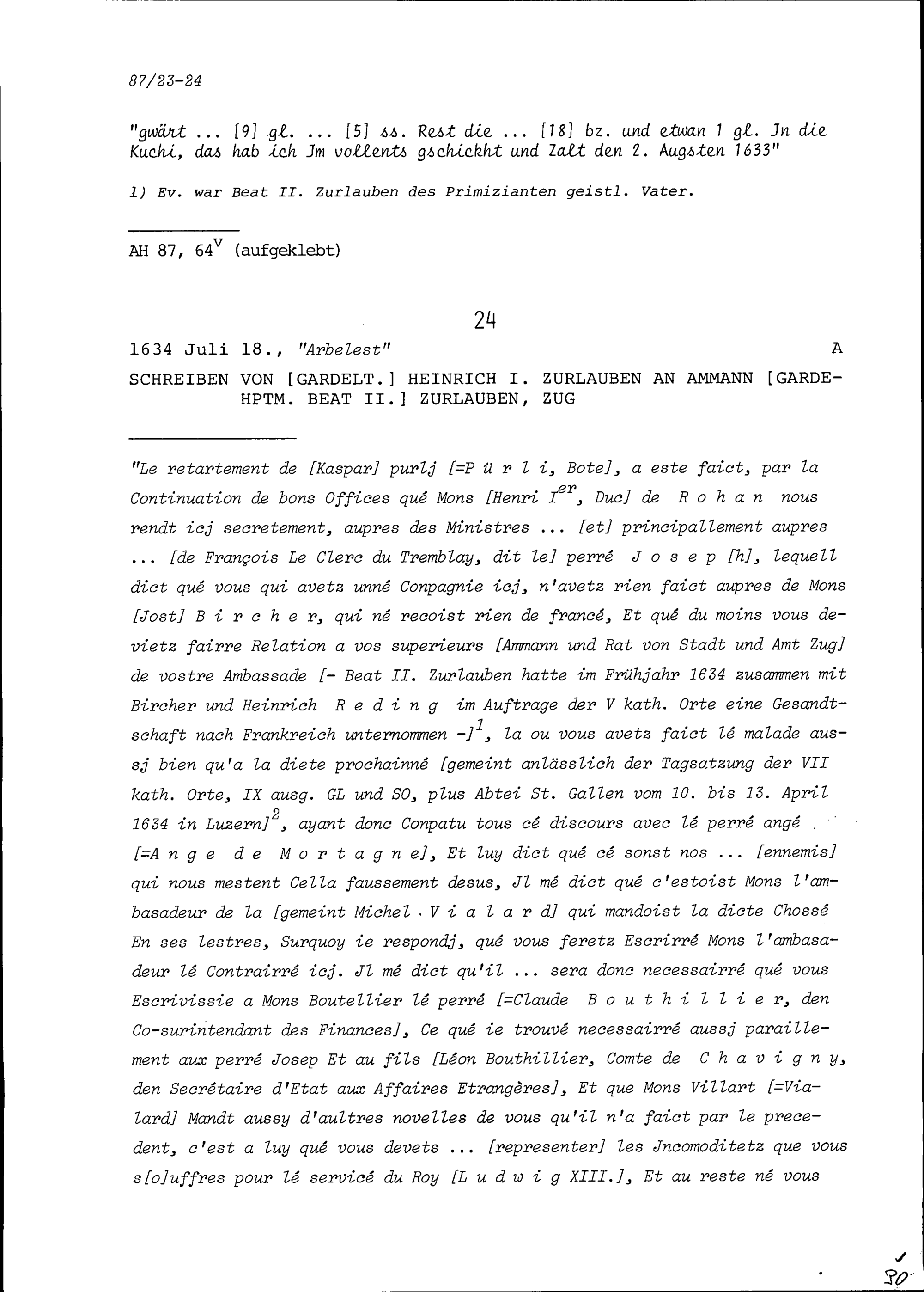 Rechnung für Beat II. Zurlauben, Ammann, ausgestellt von Unbekannt