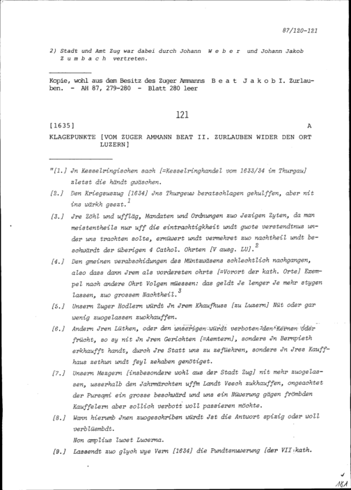Schreiben des Schultheiss und Rats Bern an die Sieben Alten Orte