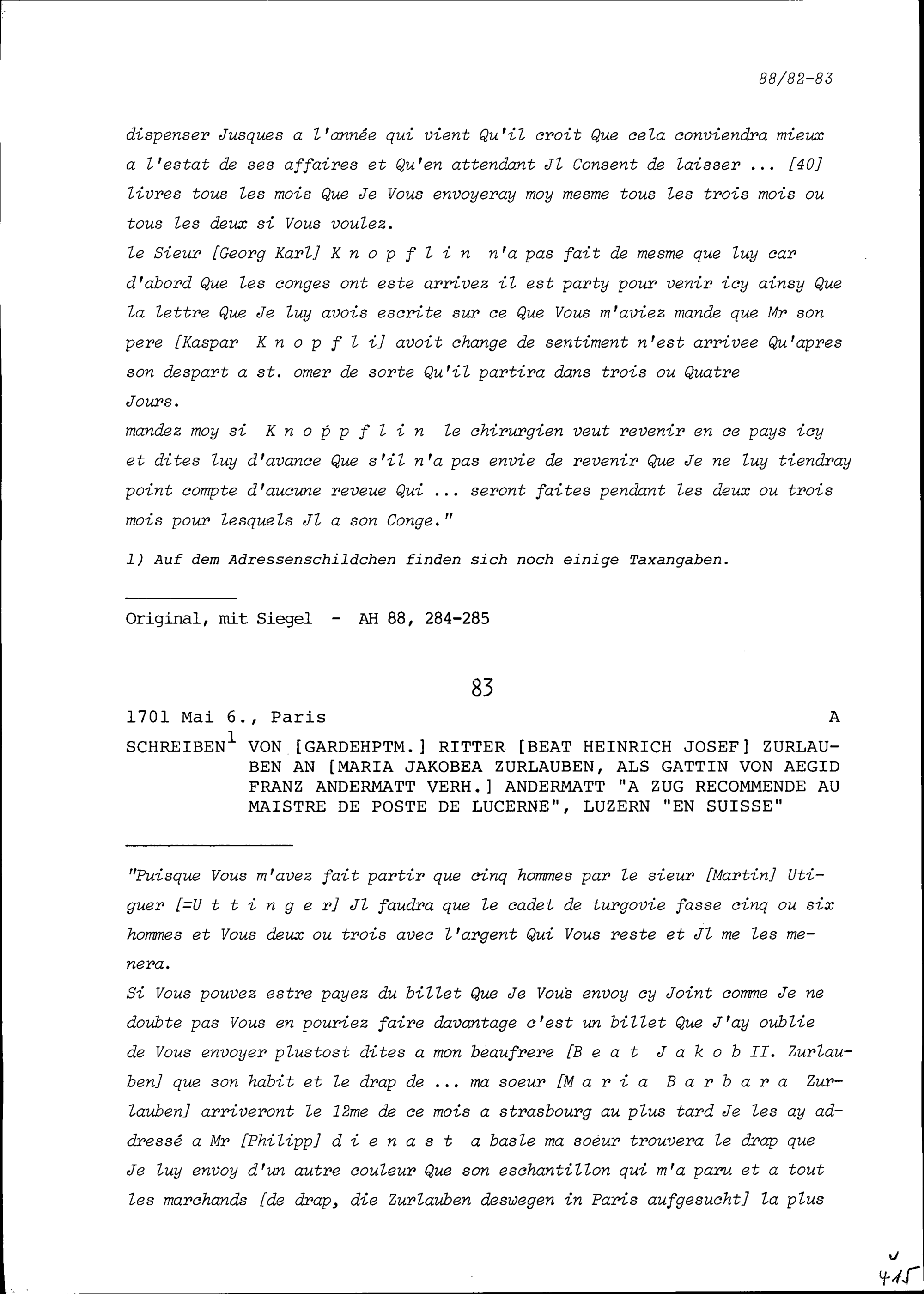 Schreiben von Beat Heinrich Josef Zurlauben, Gardehauptmann, an Maria Jakobea Zurlauben, Gattin von Ägid Franz Andermatt, Zug,