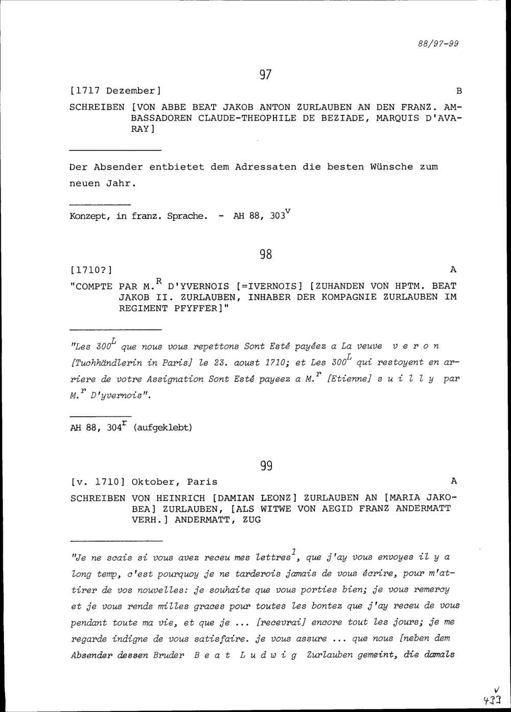 Schreiben von Heinrich Damian Leonz Zurlauben an Maria Jakobea Zurlauben, Witwe von Ägid Franz Andermatt, Zug