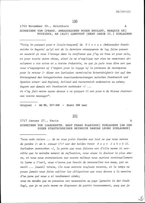 Schreiben von Beat Franz Plazidus Zurlauben, Gardehauptmann, an Heinrich Damian Leonz Zurlauben, Stadtschreiber