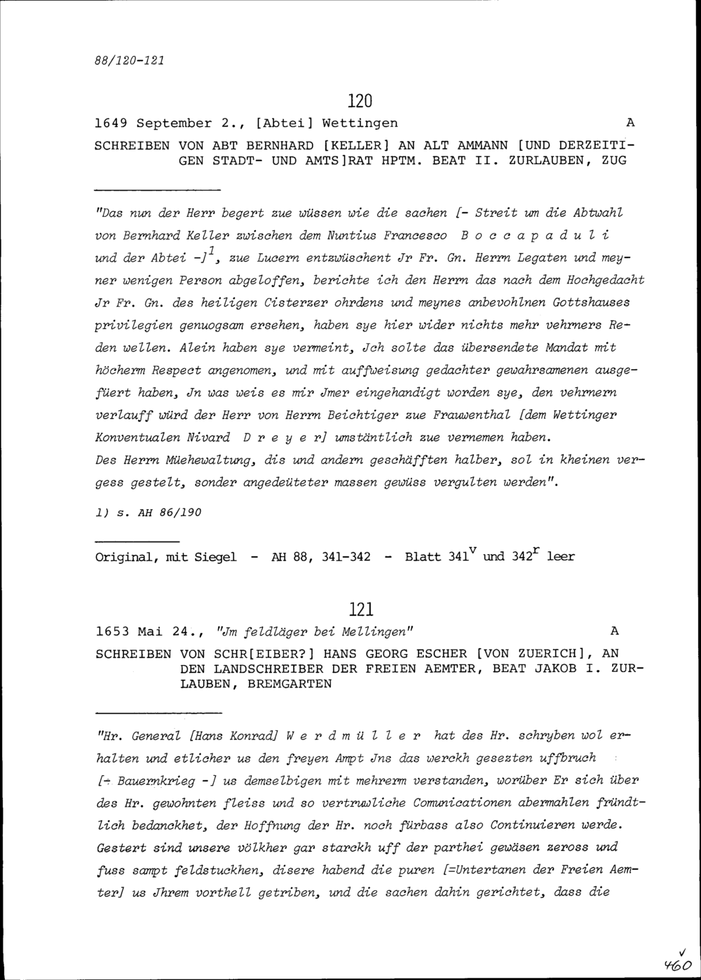 Schreiben von Hans Georg Escher, Schreiber von Zürich, an Beat Jakob I. Zurlauben,...