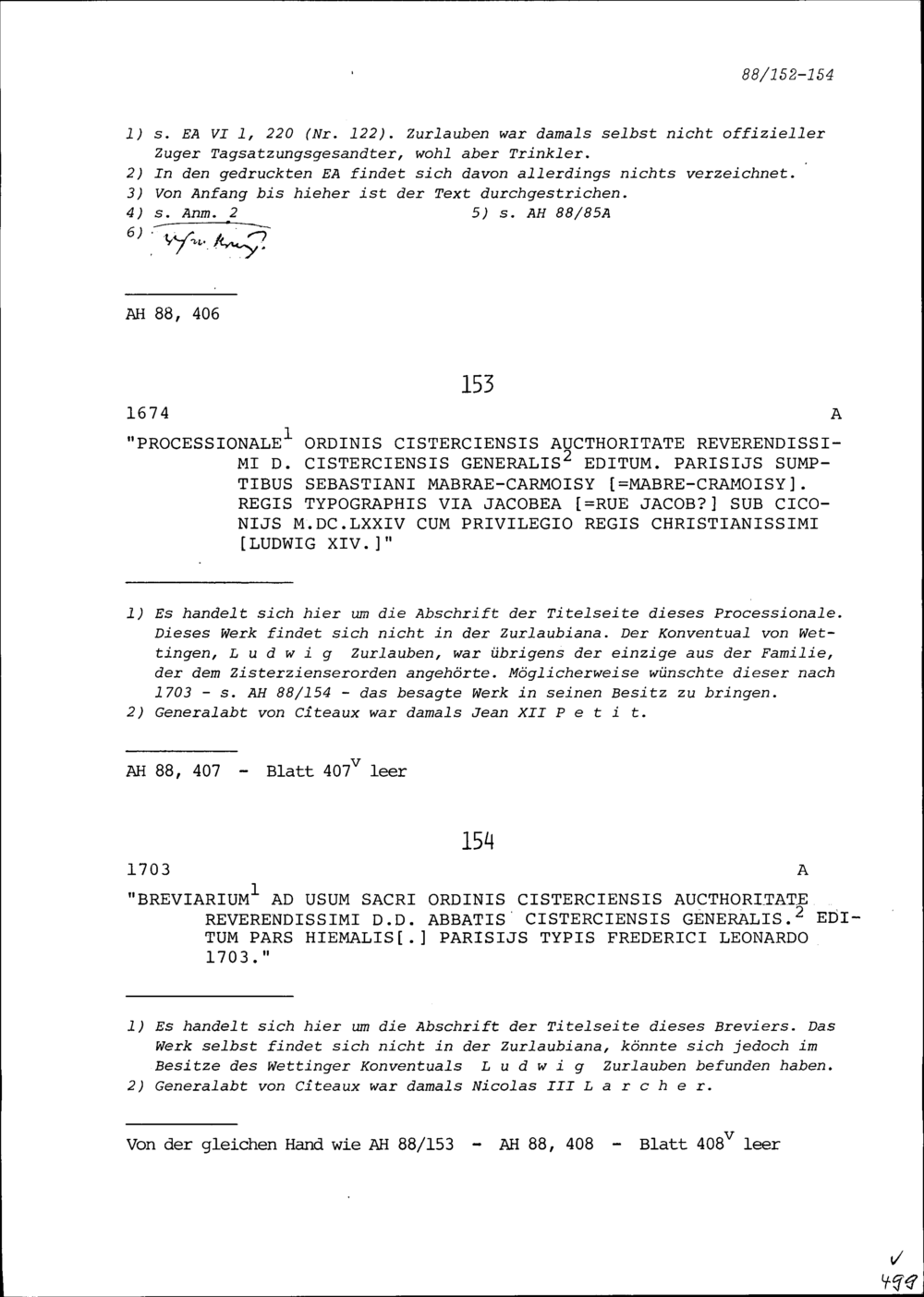 Auszüge aus dem Druck: Breviarium ad usum sacri ordinis Cisterciensis authoritate Reverendissimi D.D. Abbatis Cisterciensis Generalis editum." Paris, 1703