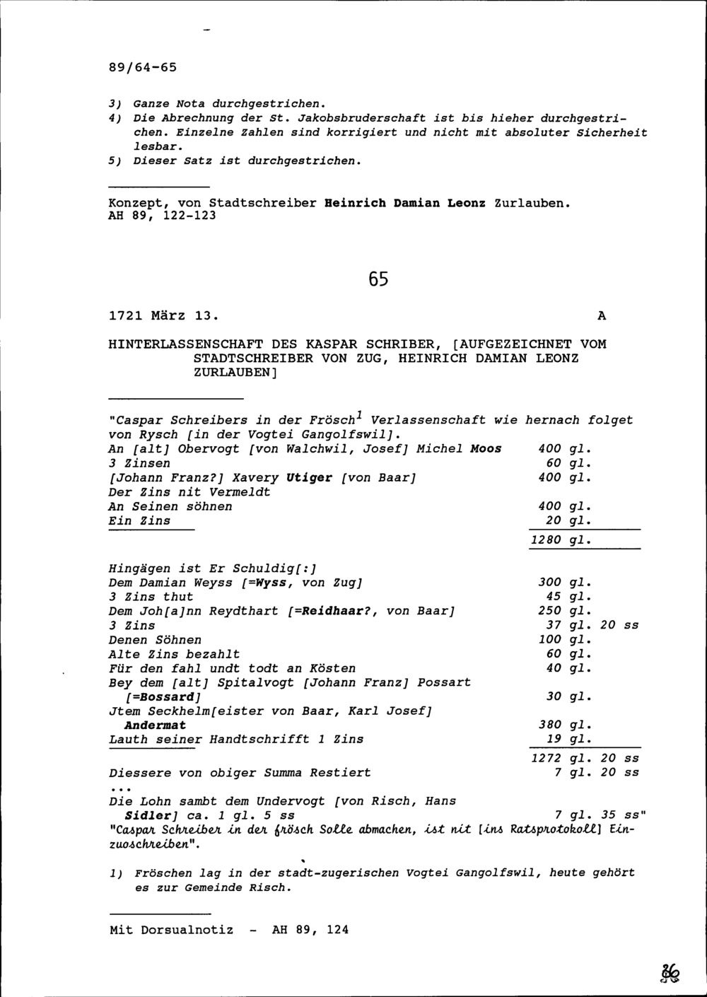 Rechnungsablage von Hans Jakob Werder, Kirchmeier von Cham, gegenüber der Stadt Zug, der Kollaturinhaberin