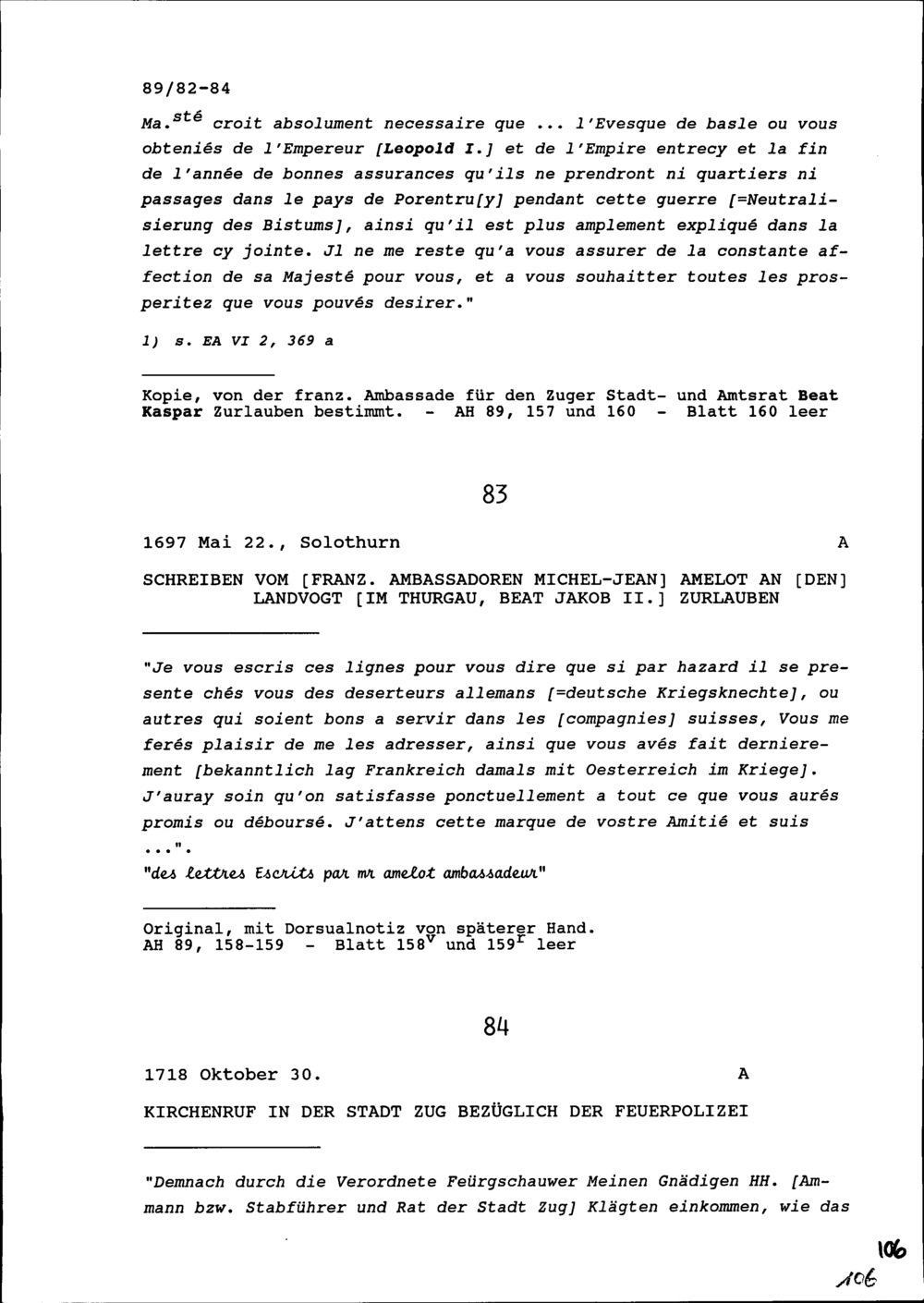 Kirchenruf in der Stadt Zug einer Feuerpolizeiverordnung