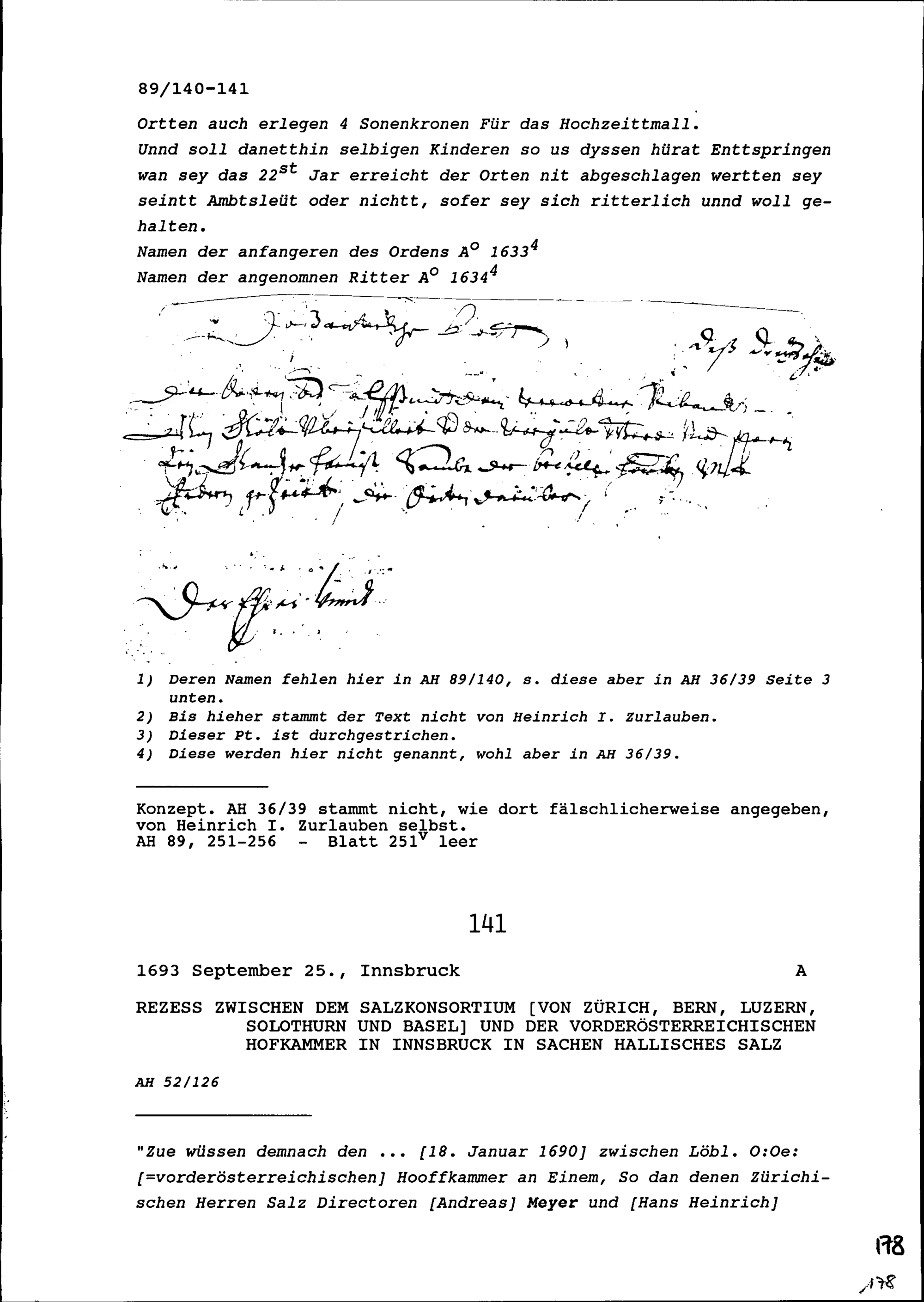 Gründungsgeschichte und Satzungen der Ritterschaft von der Runden Tafel, geschrieben von Heinrich I. Zurlauben, Gardeleutnant