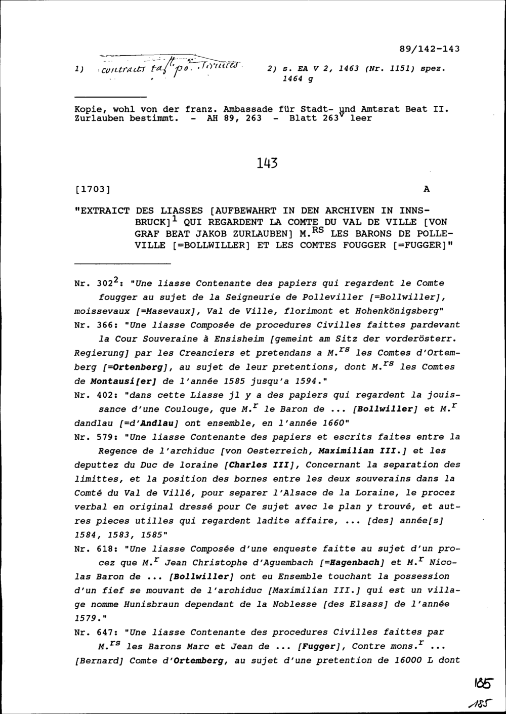 Bericht von Jean de la Barde, Ambassador von Frankreich, zuhanden des französischen Hofs