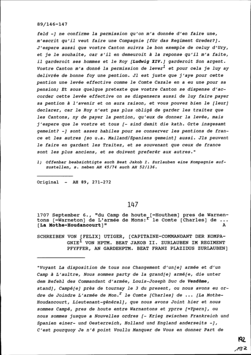 Schreiben von Melchior de Harod de Senevas, Marquis de Saint-Romain, Ambassador von Frankreich, an Beat Jakob I. Zurlauben, Statthalter Zug