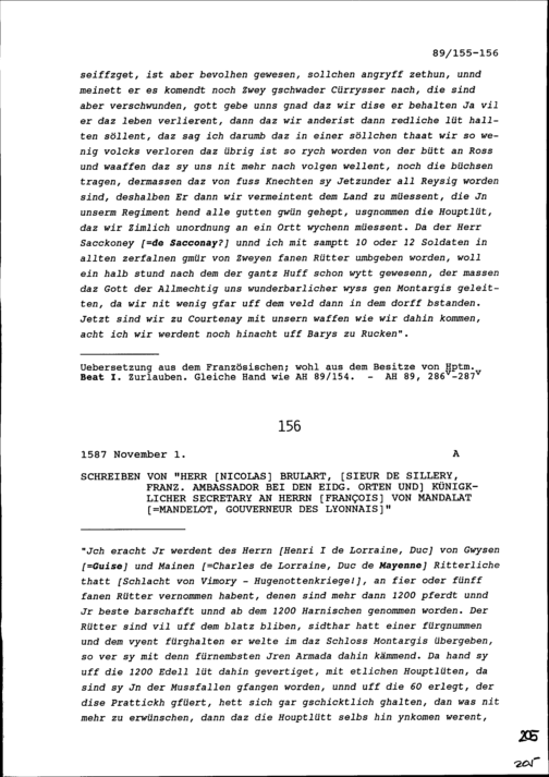 Schreiben von NN Bayards, Hauptmann, an NN Sabran, Edelmann von Heinrich III., K...