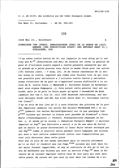 Vergleich zwischen Heinrich I. Zurlauben Gardehauptmann, und Heinrich II. Zurlauben,...