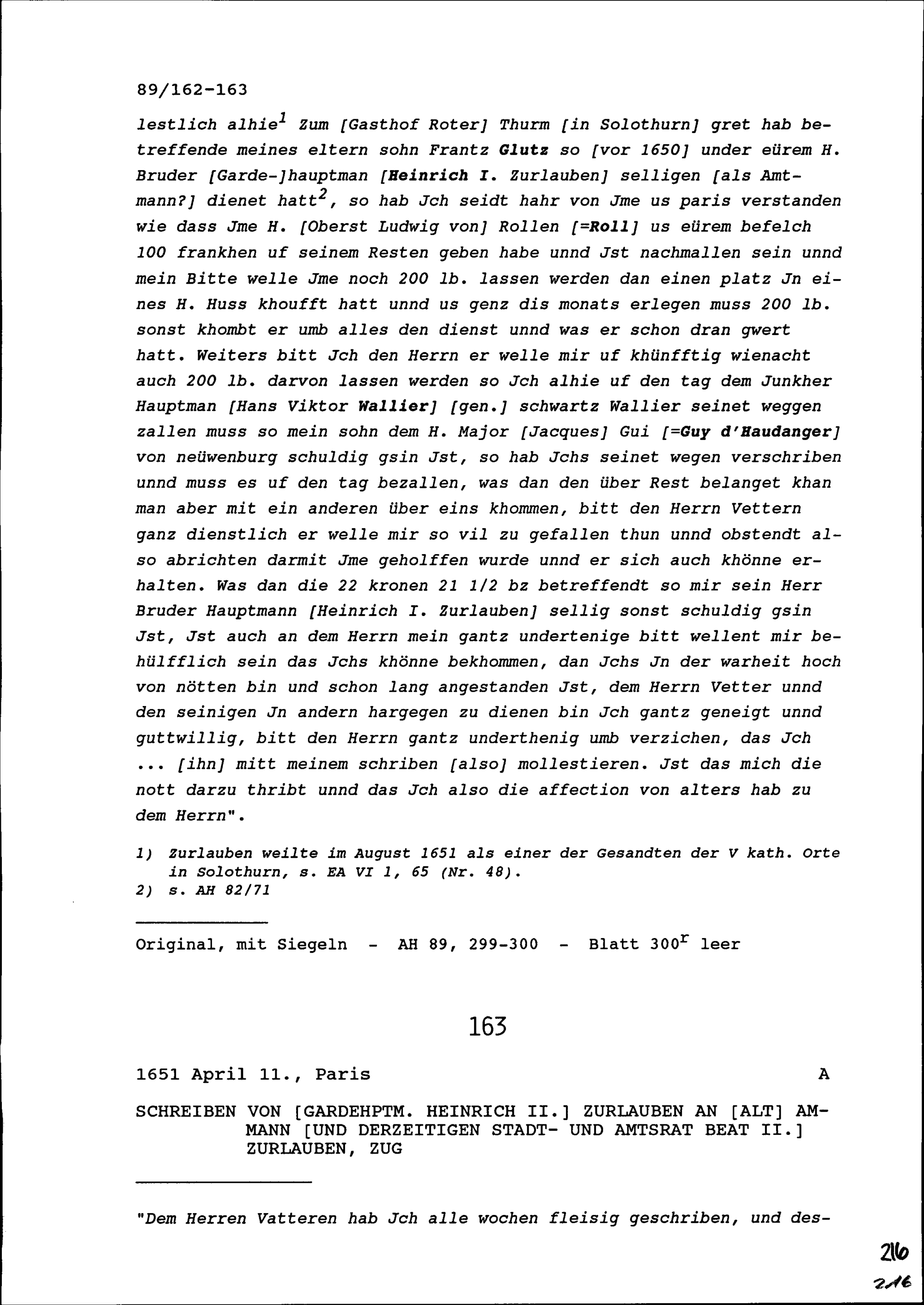Schreiben von Franz Glutz an Beat II. Zurlauben, Altammann und Stadt- und Amtrat,...