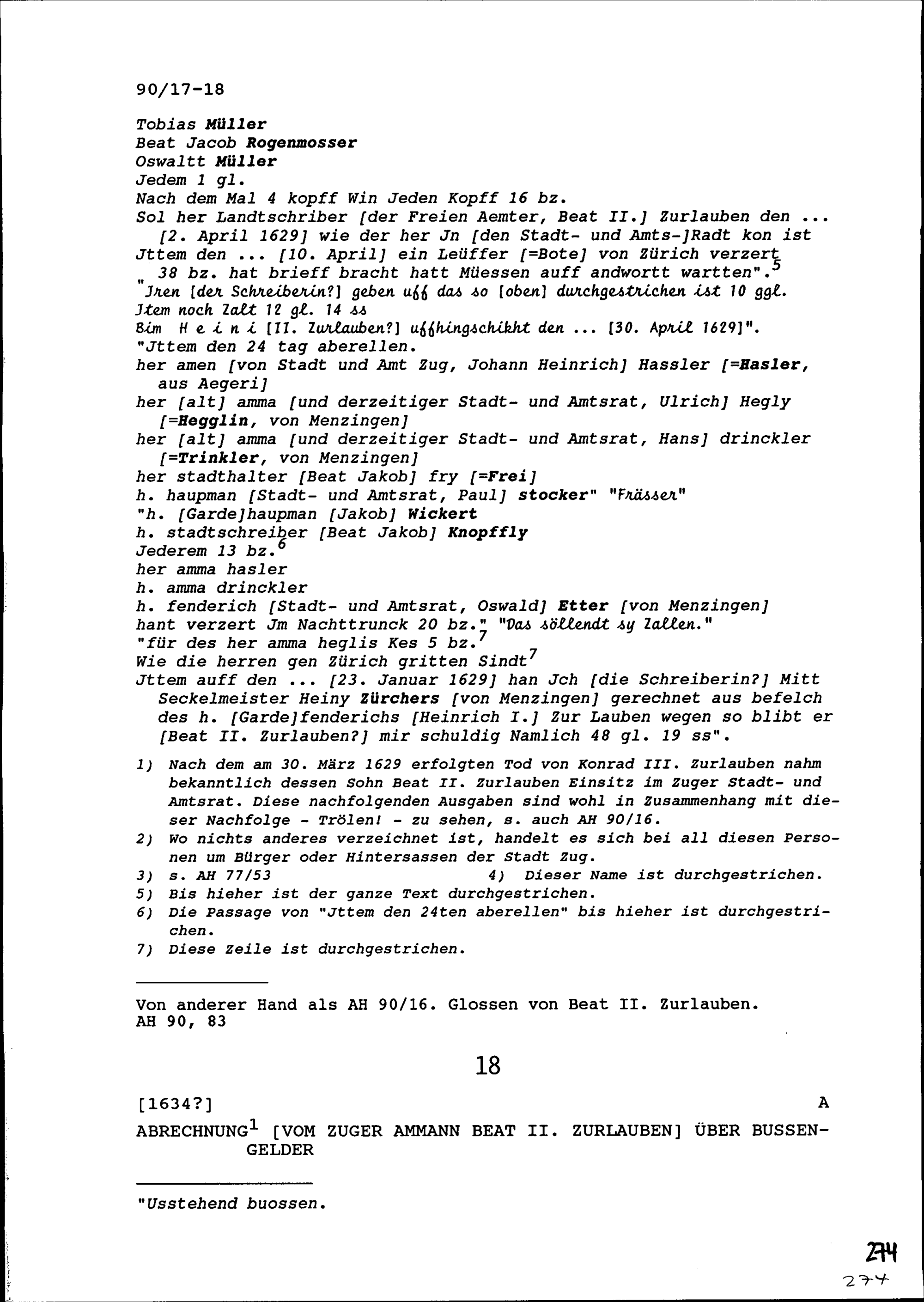 Rechnung für Beat II. Zurlauben