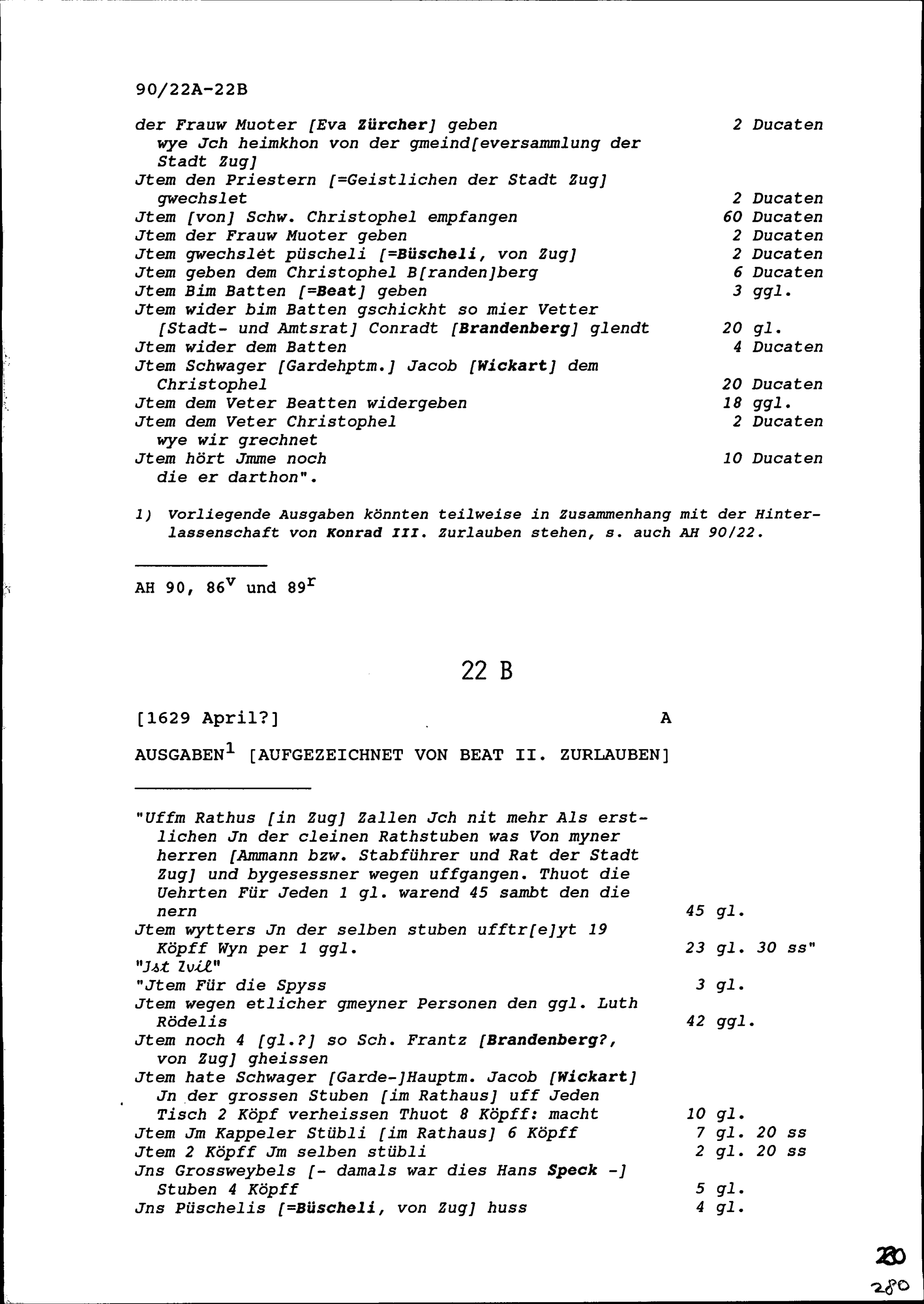 Ausgaben aufgezeichnet von Beat II. Zurlauben