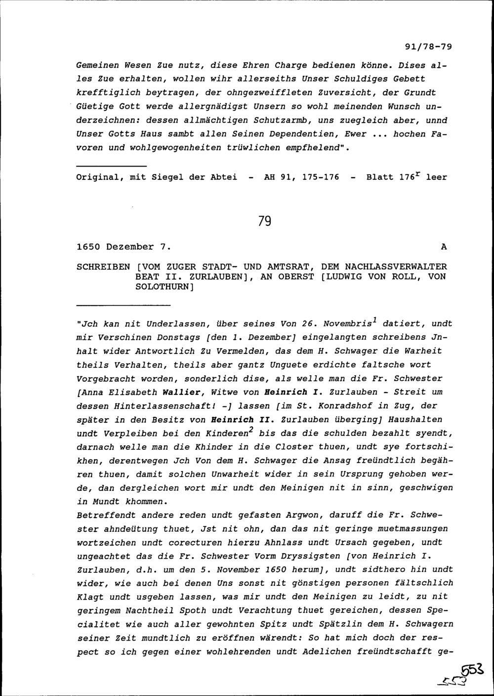 Schreiben des Priors und Konvents der Abtei Muri an Beat Jakob II. Zurlauben, Landvogt...