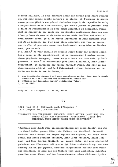 Schreiben von Michael Wartis, Student, an Beat II. Zurlauben, Altlandammann und Ratsherr, Zug