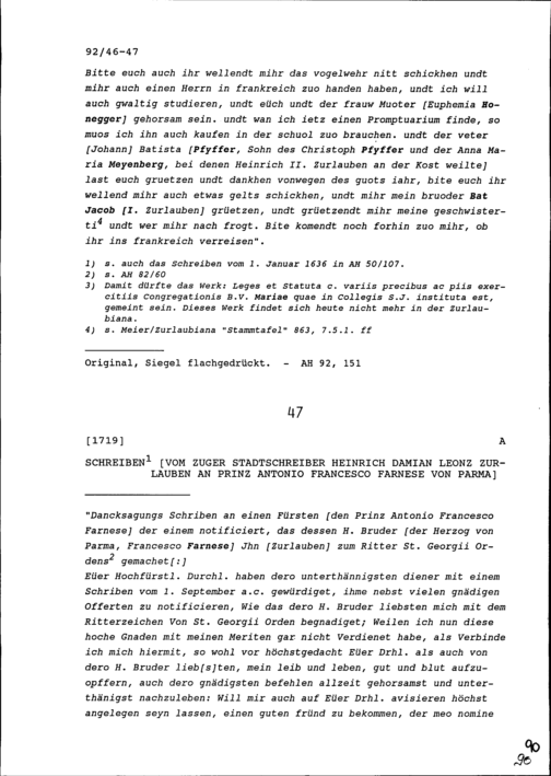 Schreiben von Heinrich II. Zurlauben, Student am Jesuitenkolleg in Luzern, an Beat II. Zurlauben, Zug