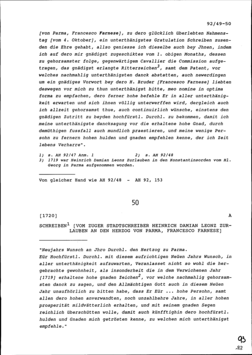 Schreiben von Heinrich Damian Leonz Zurlauben, Zuger Stadtschreiber, an Antonio Francesco Farnese von Parma