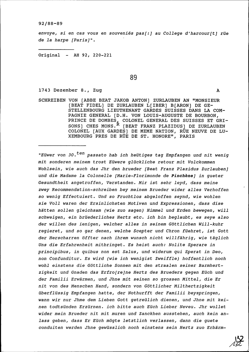 Schreiben von Heinrich Damian Leonz Zurlauben, Student, an Beat Jakob II. Zurlau...