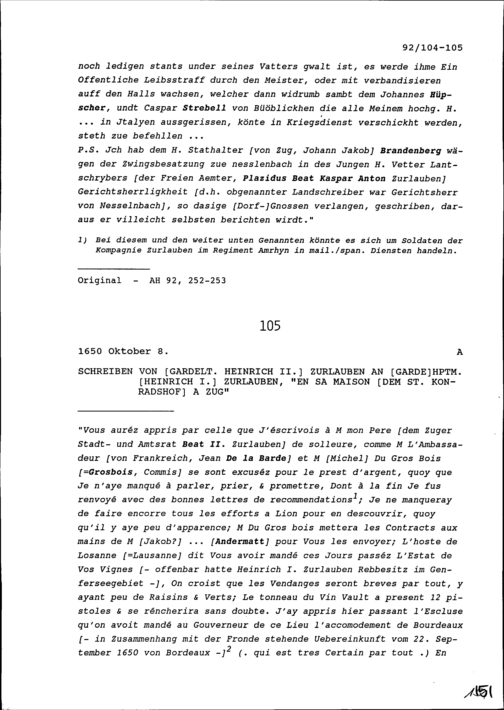 Schreiben von Beat Josef Leonz Meyenberg, Landschreiberstatthalter der Freien Ämter, an Beat Jakob II. Zurlauben, Altammann und Stadt- und Amtrat Zug