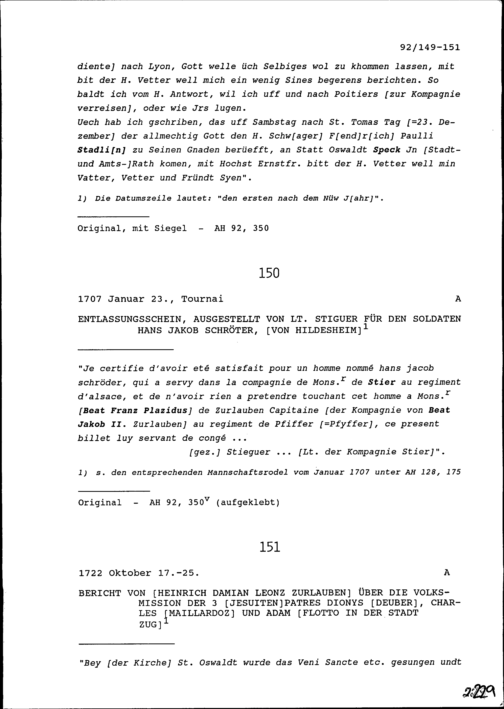 Schreiben von Oswald II. Zurlauben an Konrad III. Zurlauben, Hauptmann