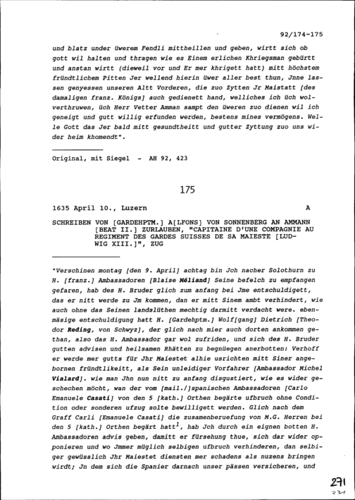 Schreiben von Hans Müller, Stadt- und Amtrat, an Konrad III. Zurlauben, Altammann von Zug und Gardehauptmann, zur Zeit in Frankreich