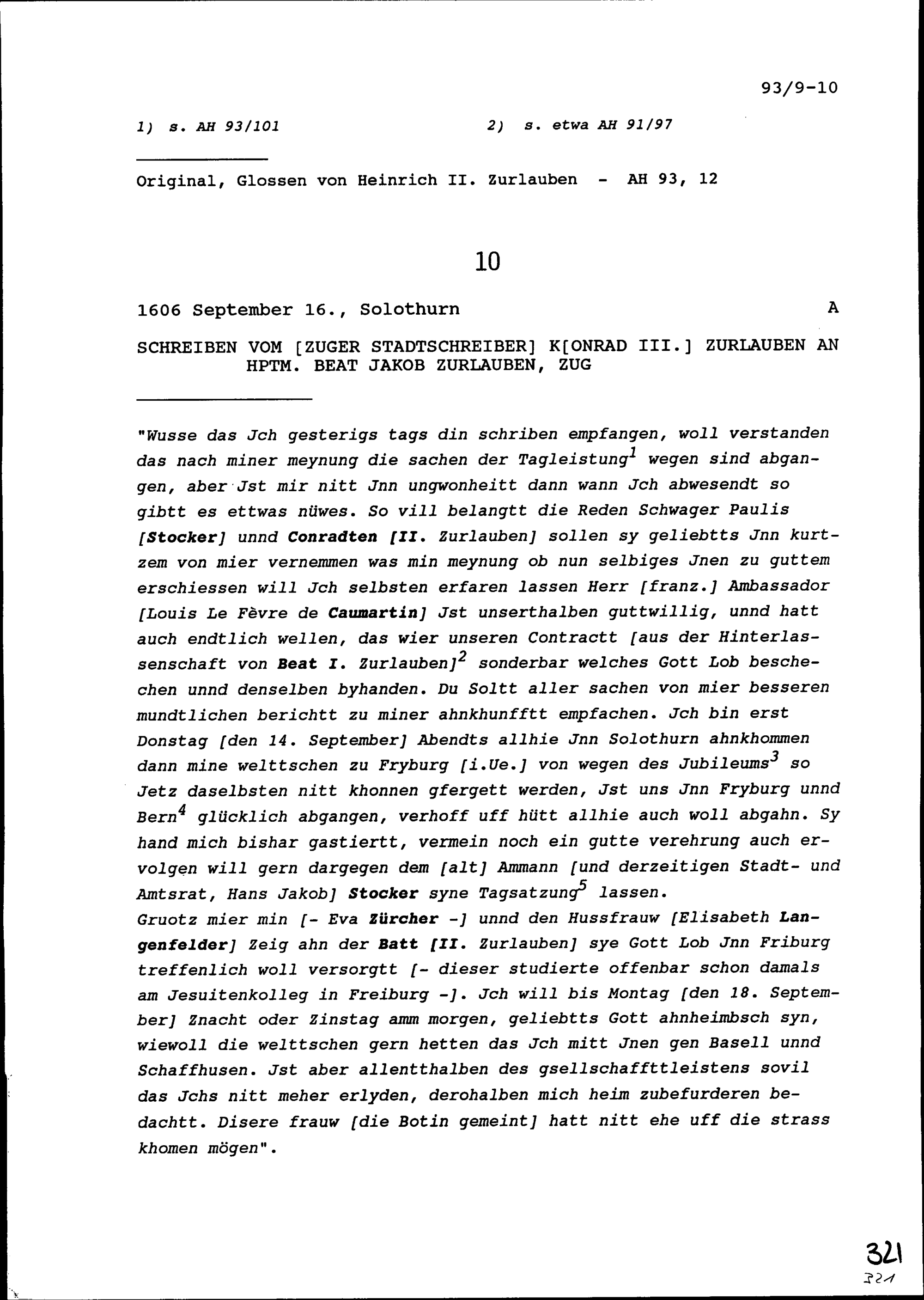 Schreiben von Heinrich II. Zurlauben, Gardeleutnant, an Beat II. Zurlauben, Stadt-...